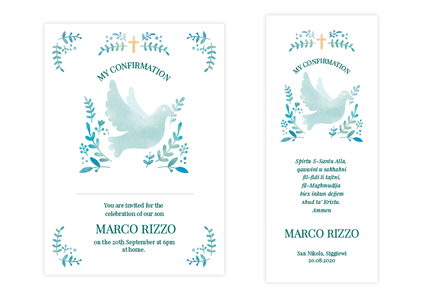 Our beautiful confirmation invitation features different designs. Perfect invitation for a boys confirmation or girls confirmation.
