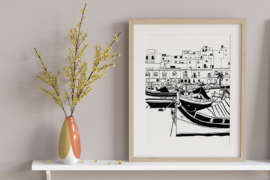 The Print itself is always exactly the size chosen so it is easier for you to frame it. Any white paper around the print itself is due to the size of paper it is printed on. – It is easy to cut the white paper so the print itself fits a frame of the same size as the print or to leave the white paper around the print which also can be beautiful placed in a bigger frame with a mat around it as shown in pictures.
